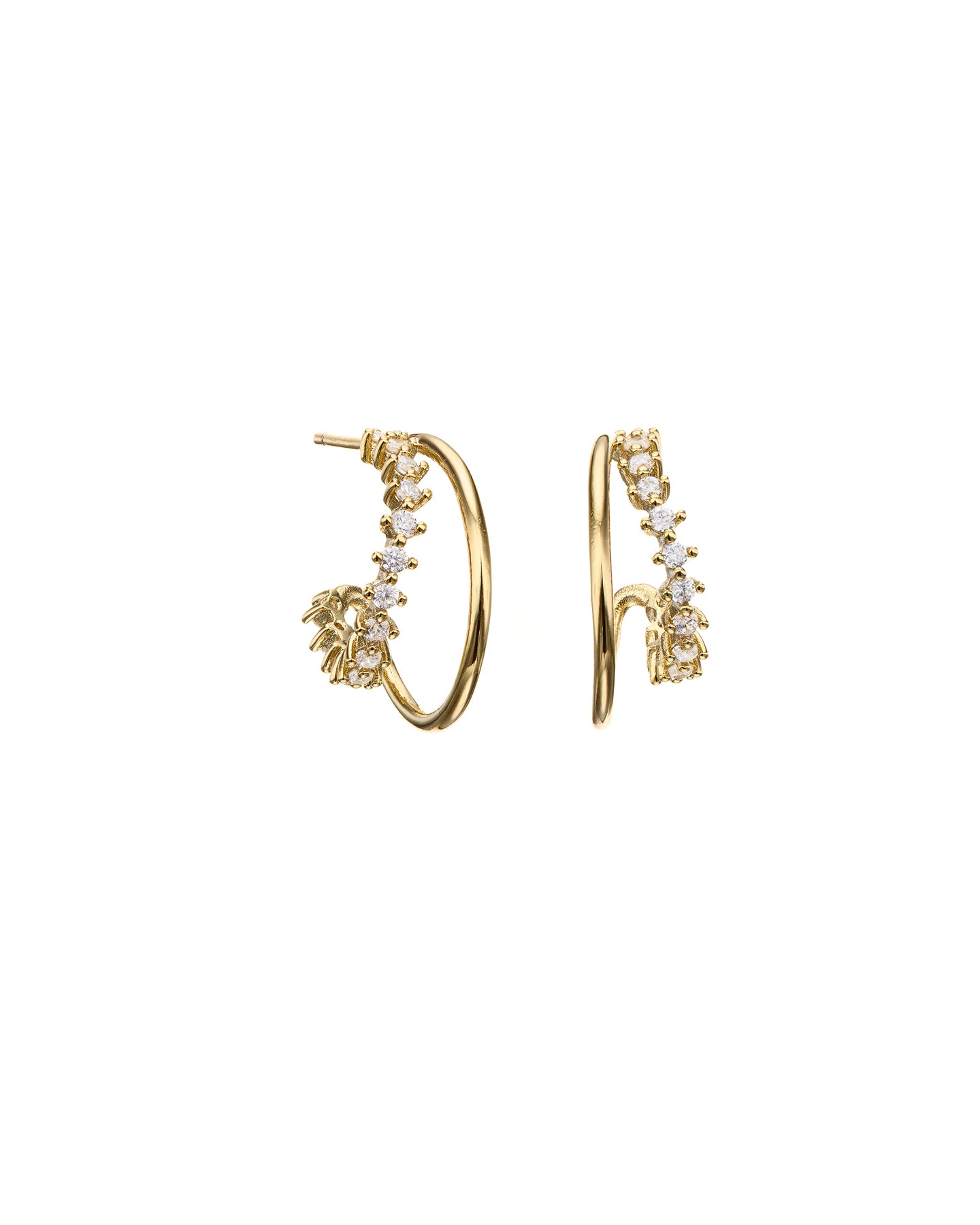 Grafted in brass, 14k gold plating. Zircon stones.