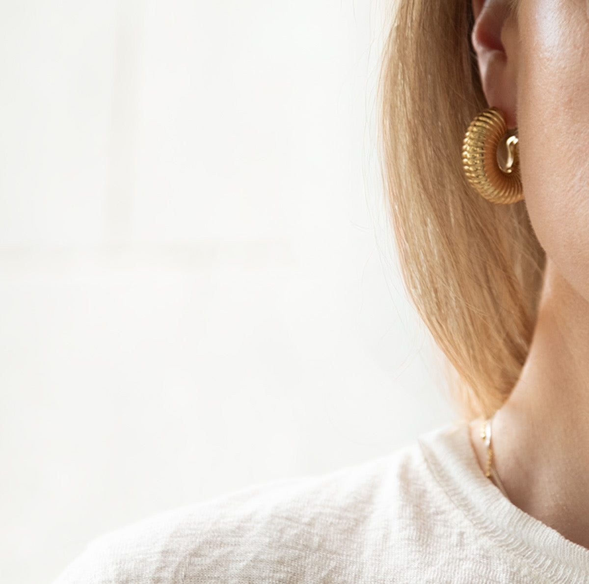 Gold Dari Hoop Earrings crafted from stainless steel with 14k gold plating.